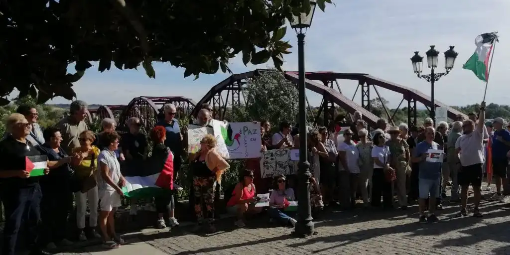 El lugar elegido a orillas del afluente del Tajo que recorre la ciudad por una zona ajardinada con fuentes recreativas de agua, nada habitual para los movimientos sociales y entidades que suelen convocar este tipo de acto, quedó pronto desbordado de gente que quería expresar sus solidaridad con Palestina.