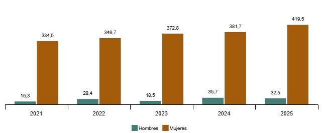 Además, nos muestra que 419.500 de estas personas son mujeres, por tanto, el trabajo de cuidados continúa recayendo de forma mayoritaria sobre ellas, condicionando su acceso al empleo, su estabilidad y su carrera profesional.