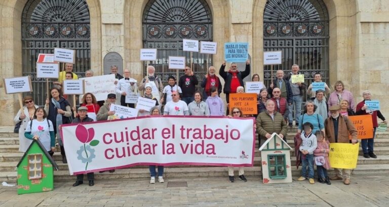 El texto enumera realidades concretas: “la imposibilidad de acceder a una vivienda digna”, “la sobrecarga invisible de los cuidados”, “la explotación de las trabajadoras del hogar” o “la plaga de siniestralidad laboral” y denuncia “una organización social y económica que pone el beneficio por encima de la vida”.